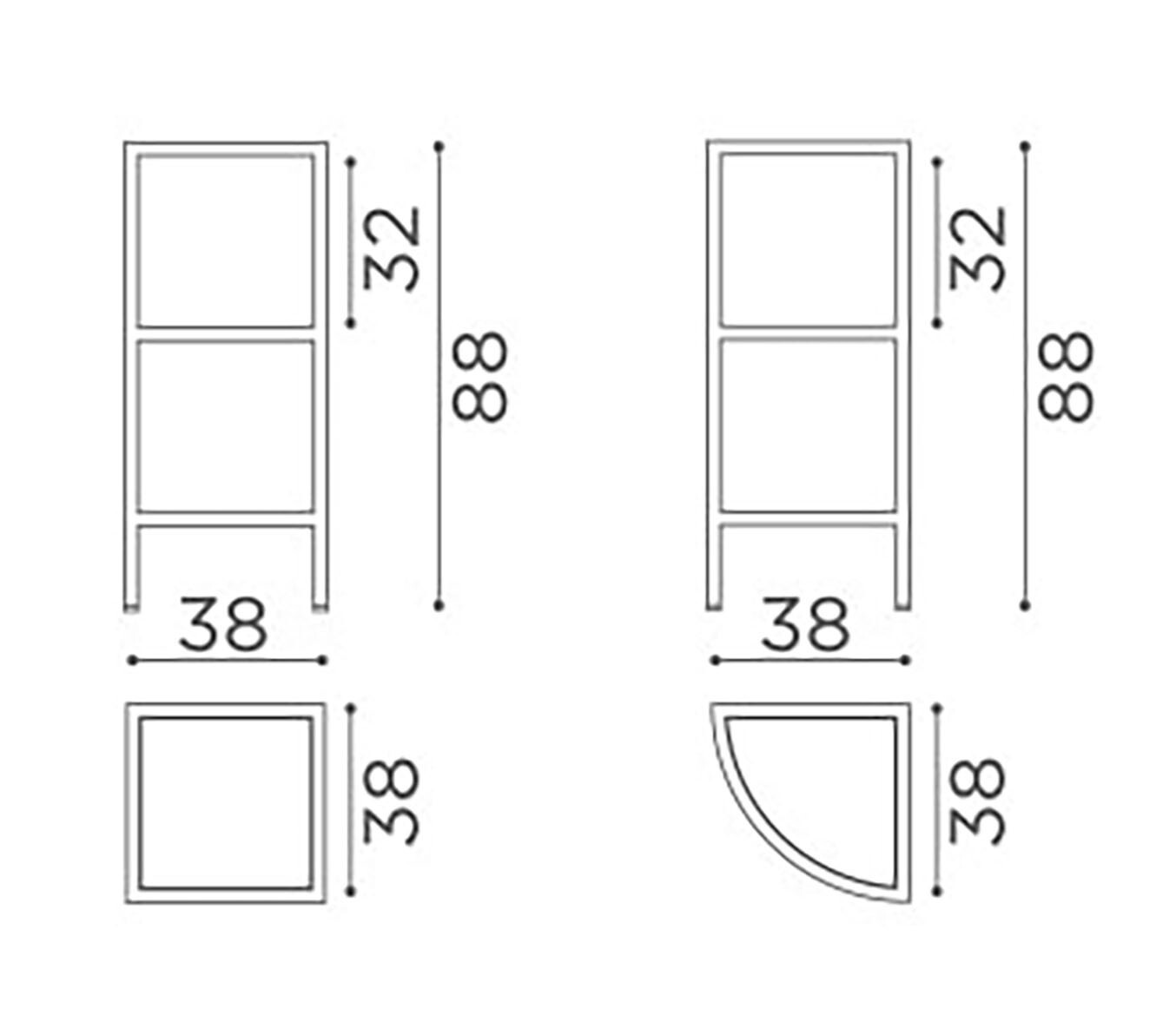 Starting from a 120 cm module for small salons, it can be developed in an infinite number of sizes and shapes to meet every need.
