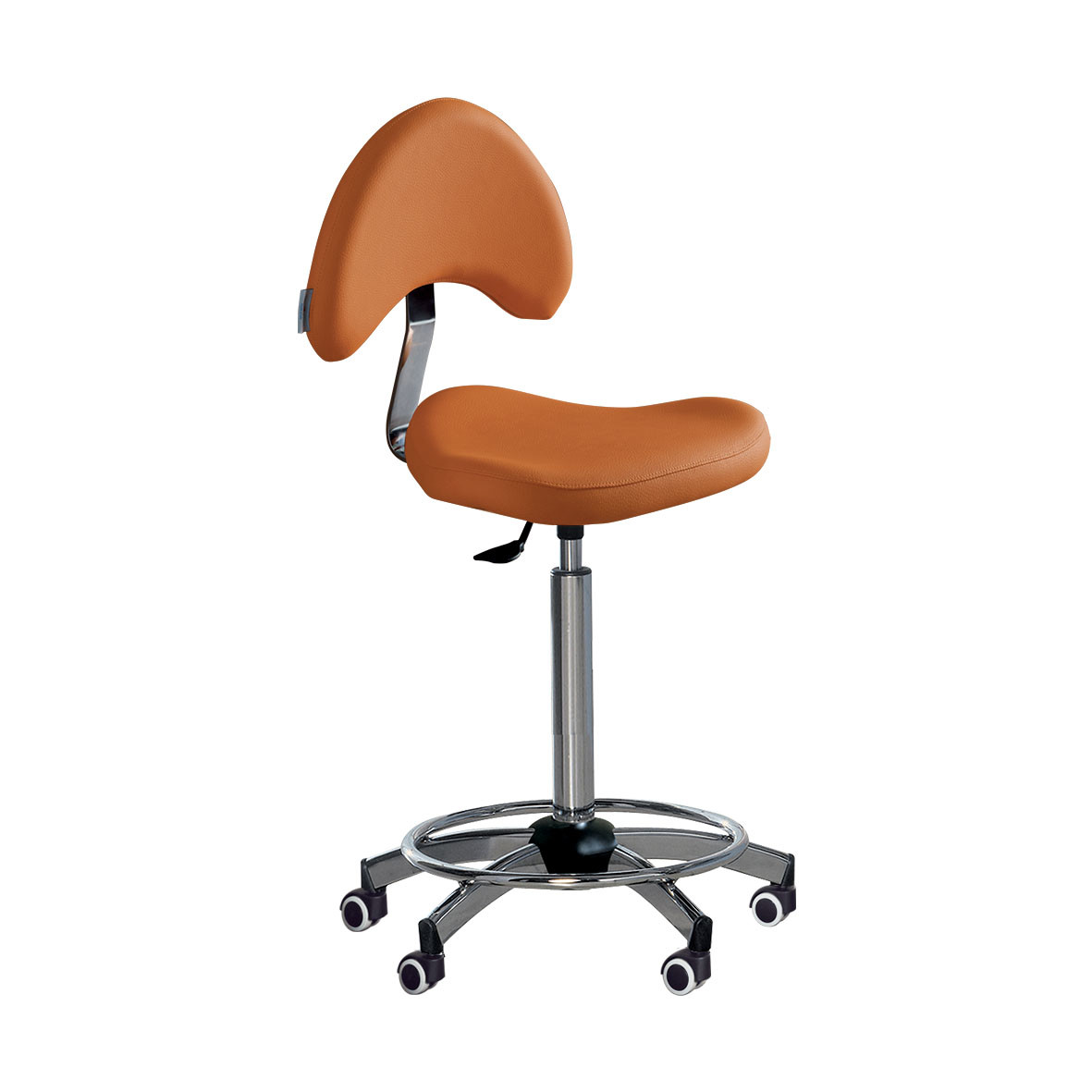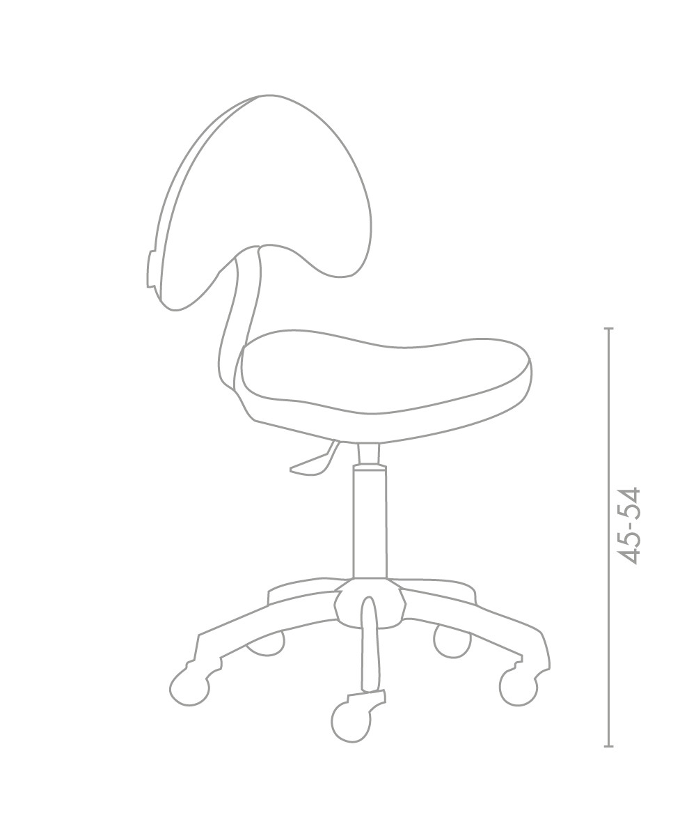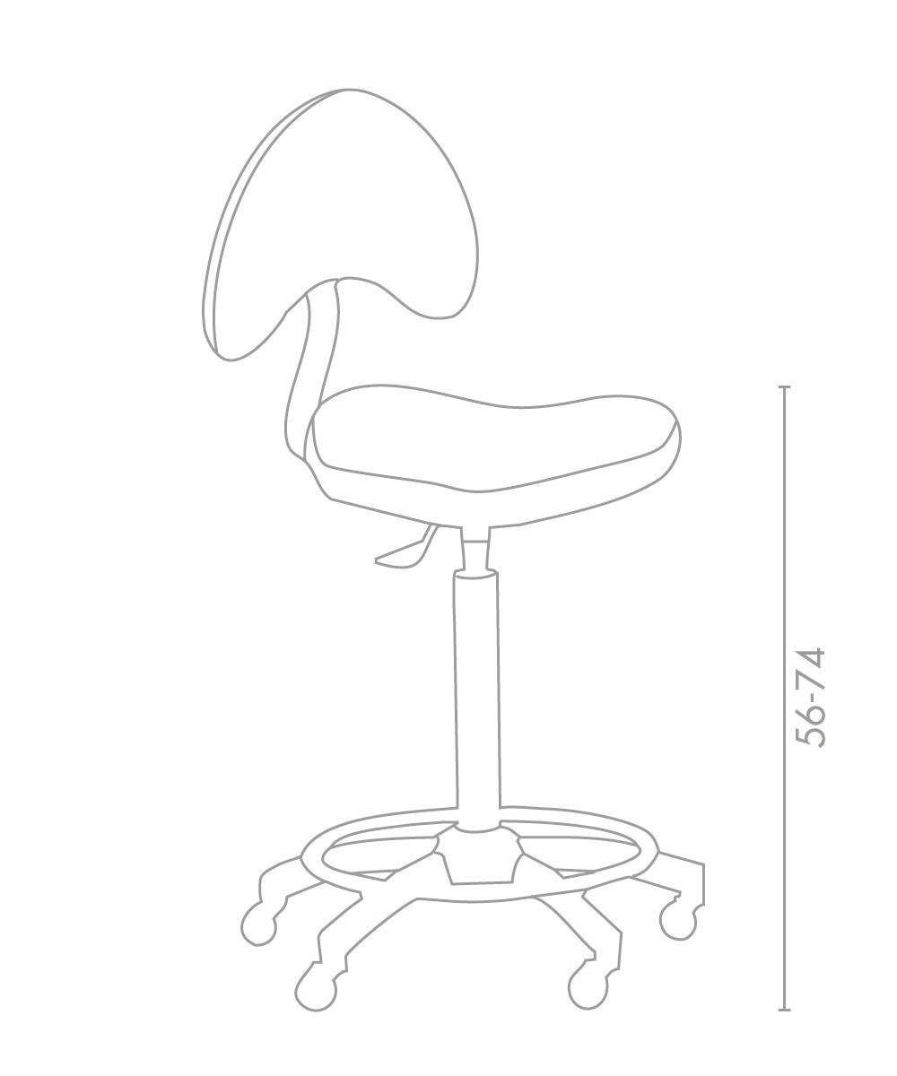 Sgabello con schienale dalle forme ergonomiche disponibile con 2 altezze di colonna: normale e per trattamenti.