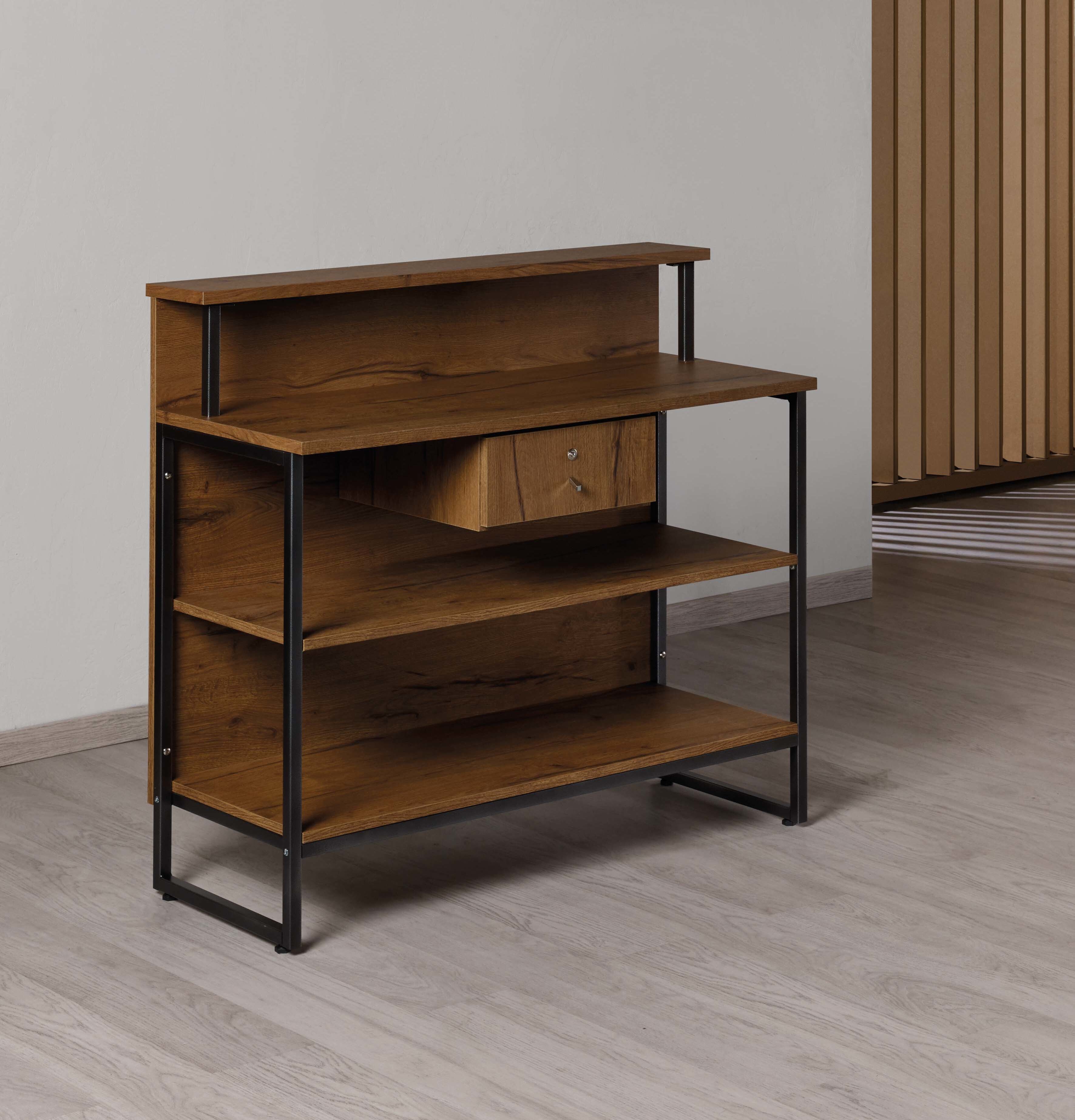 Ripiani di sevizio, mobiletto e cassetto con chiave