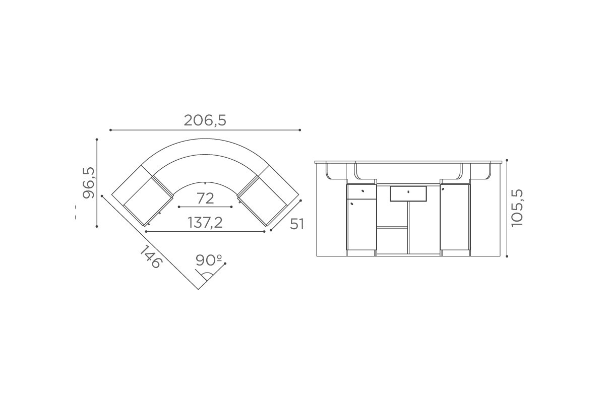 RD/140 Form reception in wenge con frontale curvo tappezzato