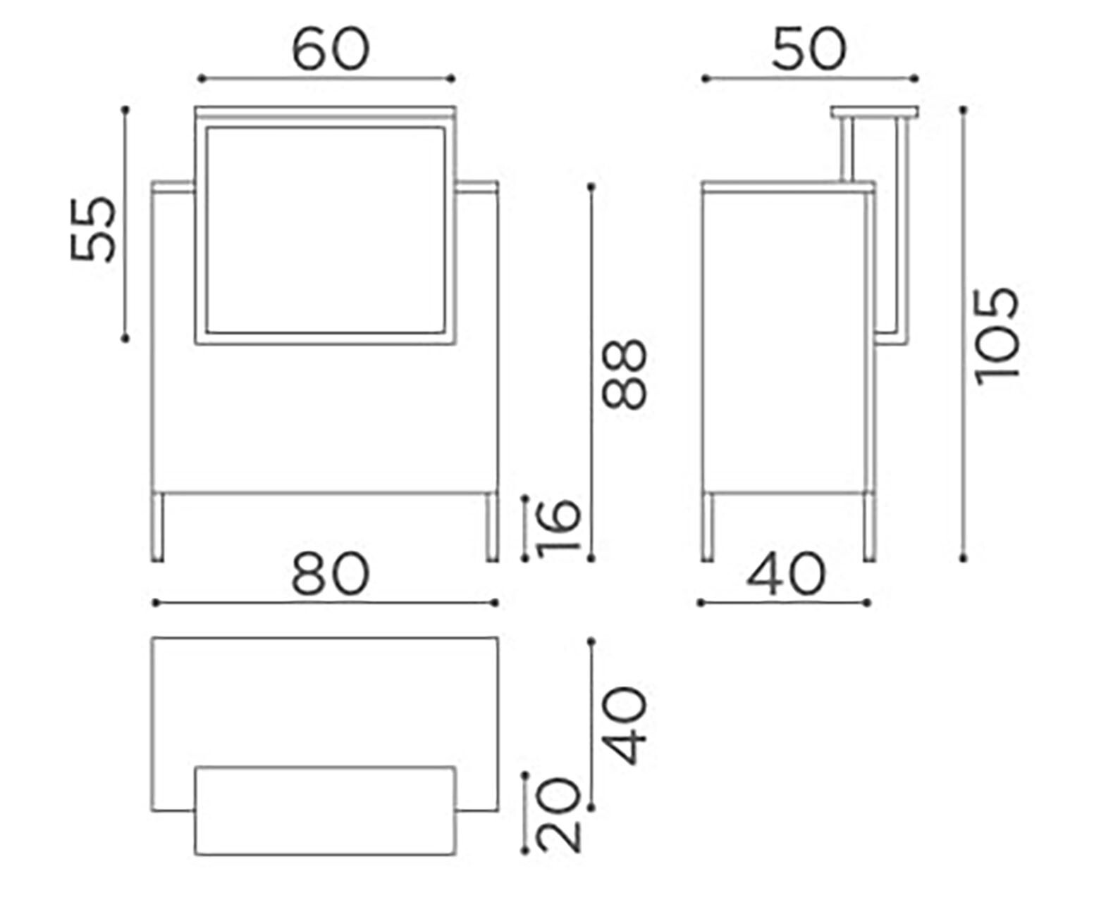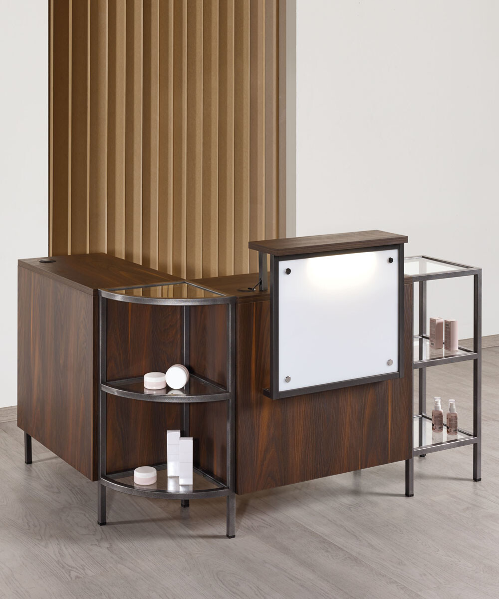 Partendo da un modulo da 120 cm per i saloni di piccole dimensioni, può essere sviluppata in un’infinità di dimensioni e forme per far fronte ad ogni esigenza.