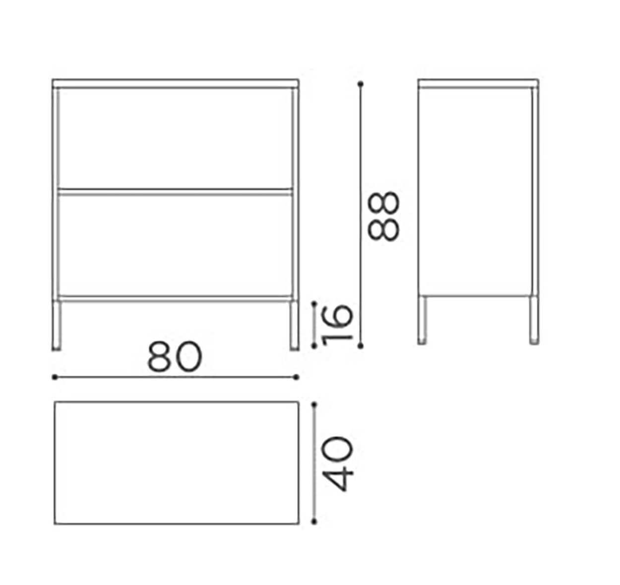 Ripiani di sevizio, mobiletto e cassetto con chiave