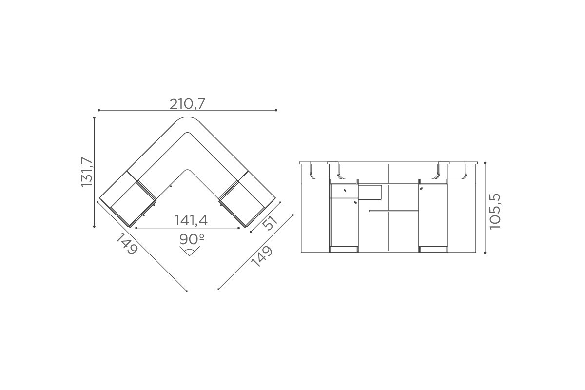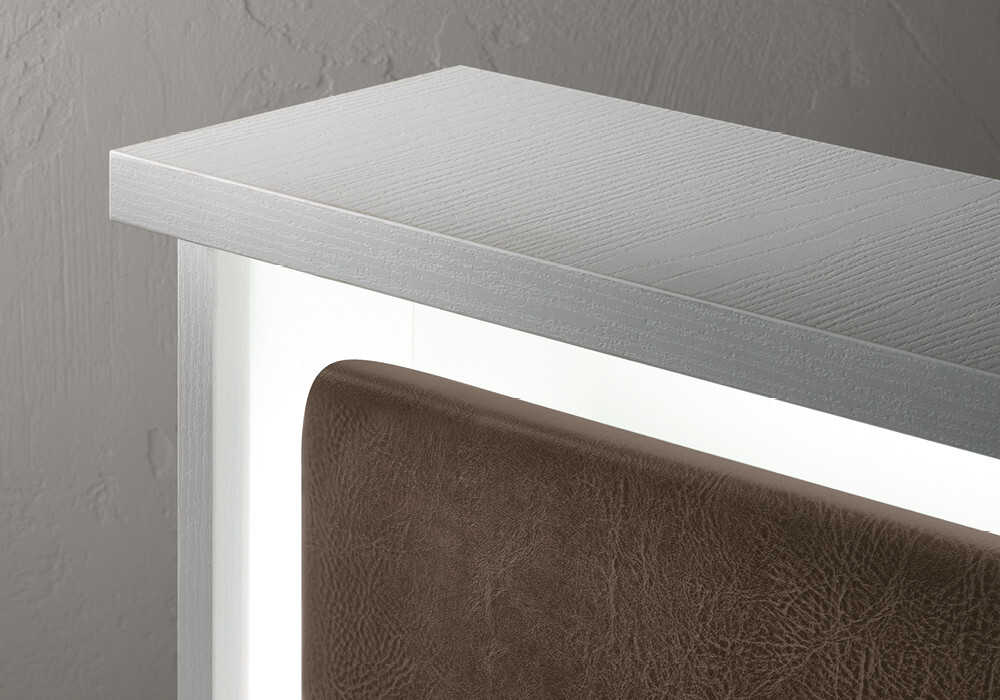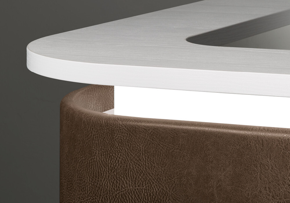 RD/262 Smart cassa in bianco frassino con frontale curvo tappezzato e mobiletto laterale a sinistra