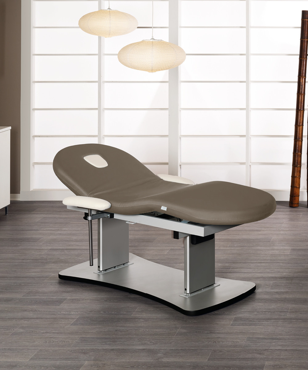 The Lotus electric bed is the must-have product for every beauty centre. The motorised electric mechanism allows you to set the positions of both back and leg cushions with ease, as well as the height of the structure, ensuring maximum comfort for both the customer and the technician. Try it once, and you will never go back. In addition, the two-column structure ensures extreme stability during procedures, while the comfortable padded couch - equipped with an inset removable cushion for the face - can be customized by choosing from a wide range of colours. The roll holder and height-adjustable armrests are optional.