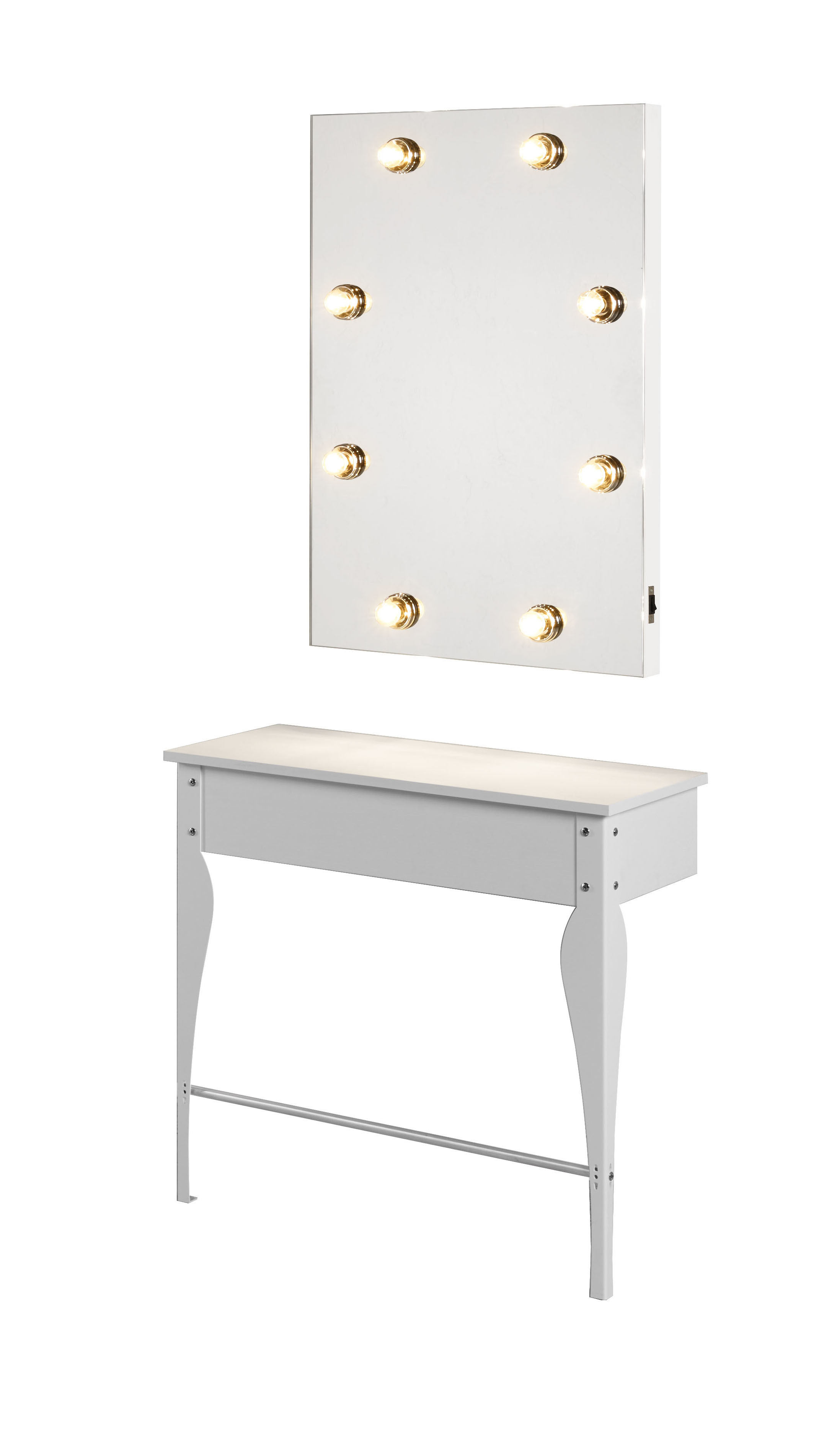 The beauty mirror itself is surrounded by 8 professional bulbs for the perfect amount of lighting.