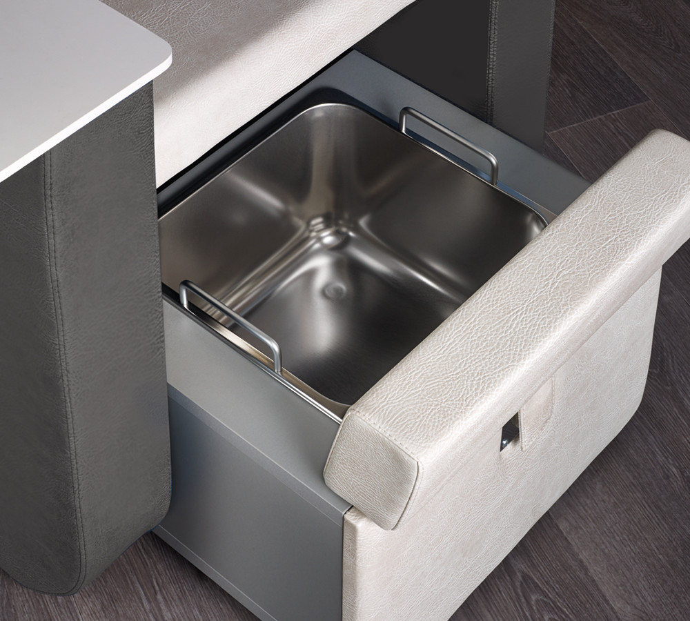 Optimise time and space with this “all in one” beauty chair! Designed specifically for manicure and pedicure treatments, with the PRESTIGE you have everything you need in one product; compact, functional and a compelling design. A pull-out drawer - perfectly camouflaged by upholstered padding - conceals a stainless-steel pedicure basin. The padded armrests are equipped with two hand supports specifically for manicure treatments. However, that’s not all; the Prestige is also extremely comfortable! With a reclining backrest and height-adjustable leg rest, your customers can indulge in a moment of extreme relaxation during treatment. The Prestige is available in a choice of Skai Colours, either one or two-tone, at no extra cost.