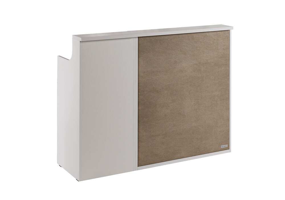 RD/272 reception desk with white ash structure, upholstered front panel and side cabinet