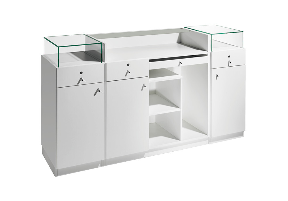 RD/282 reception desk with white ash structure and two side cabinet